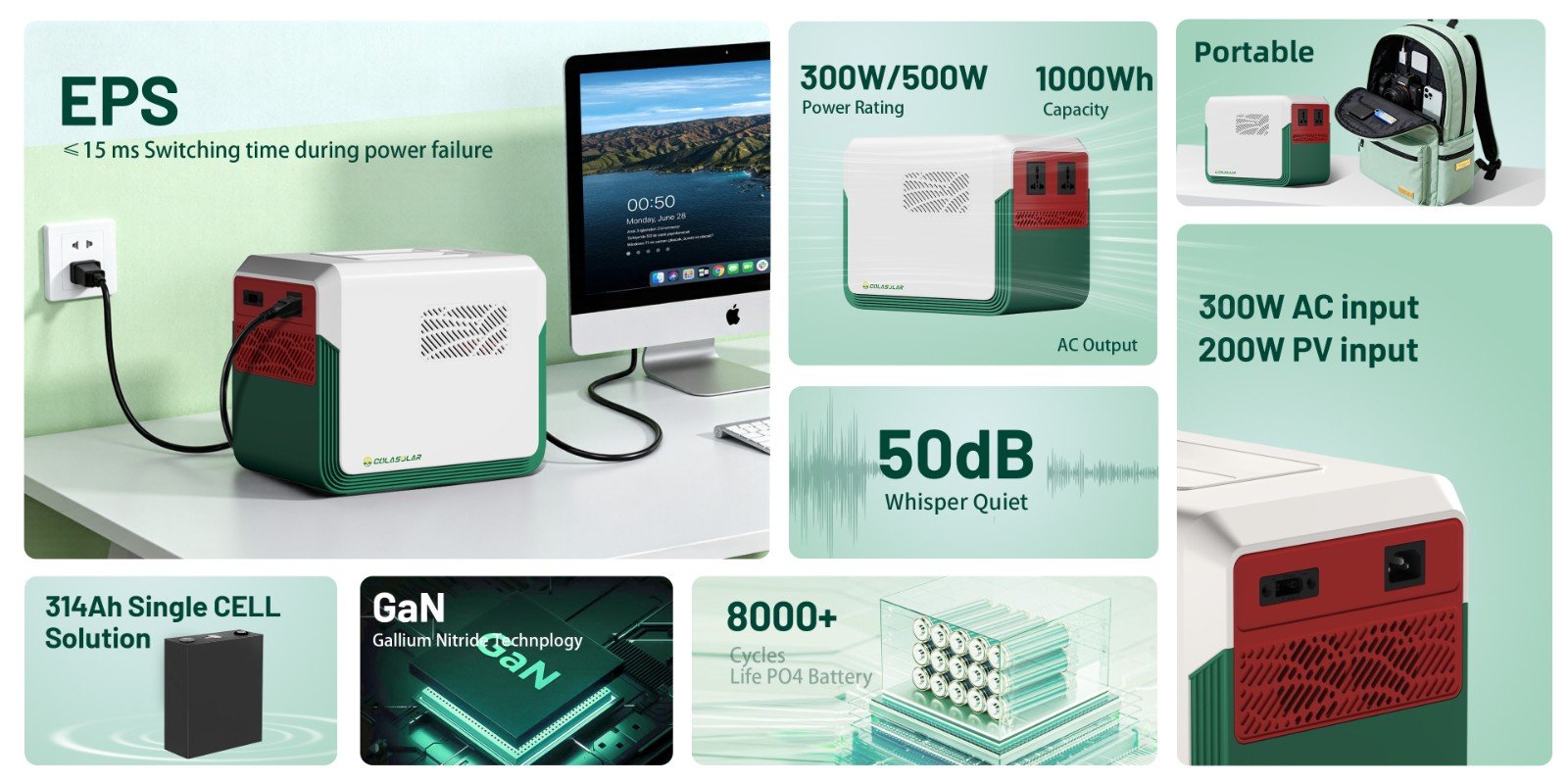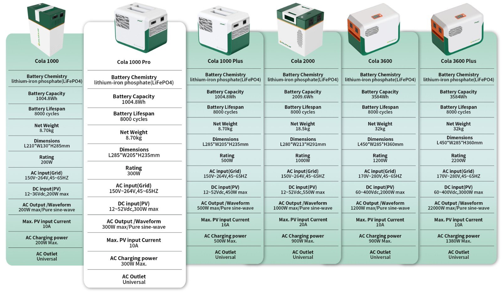 ColaSolar 2kWh All-in-One Energy Storage System Equipped with two 314Ah lithium batteries, the system offers a total capacity of 2000Wh. It features an 800W AC input, 450W DC input, and delivers a stable 1000W 220V AC output. Designed for versatility, it’s ideal for powering homes, businesses, and off-grid applications.