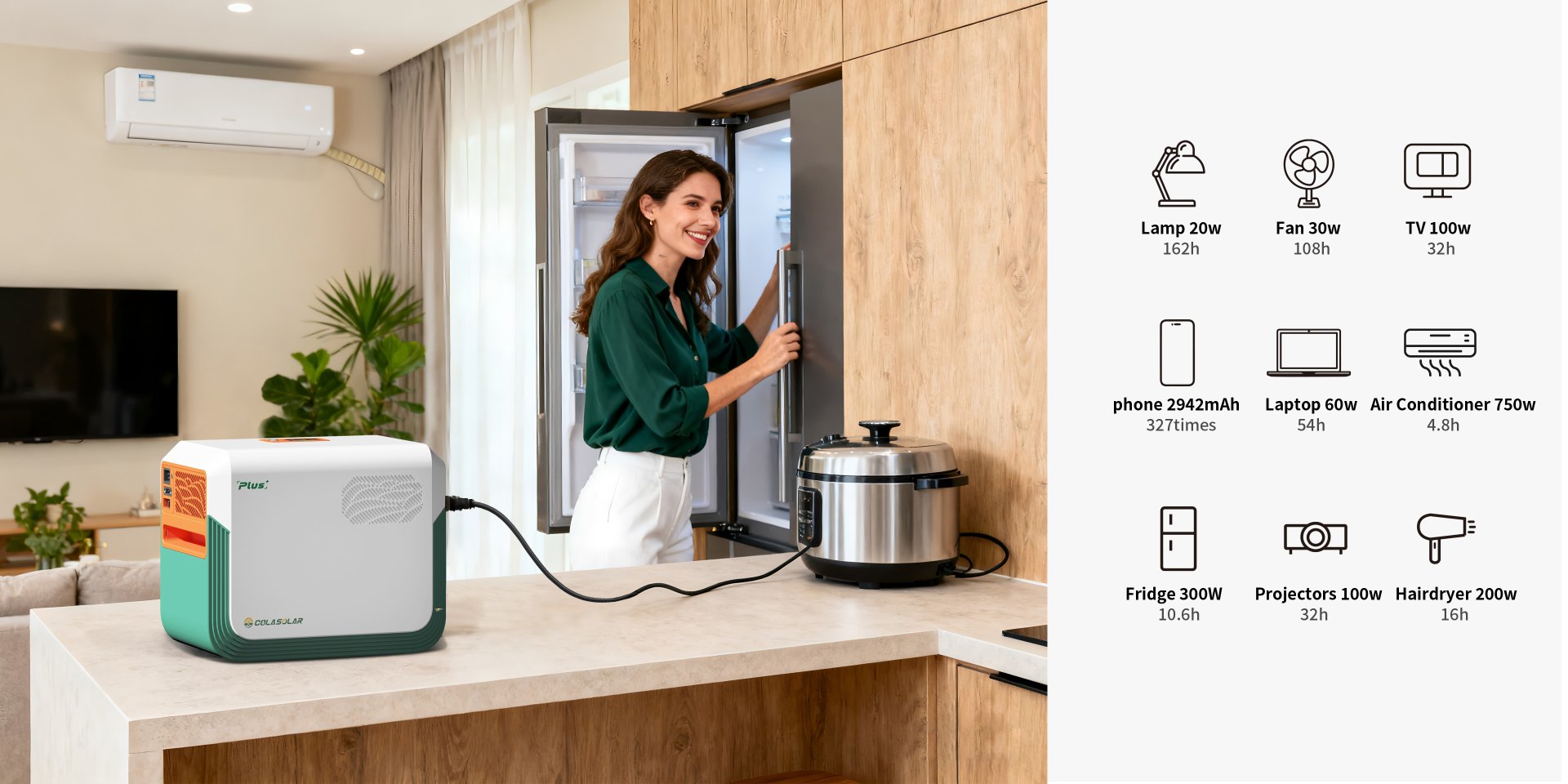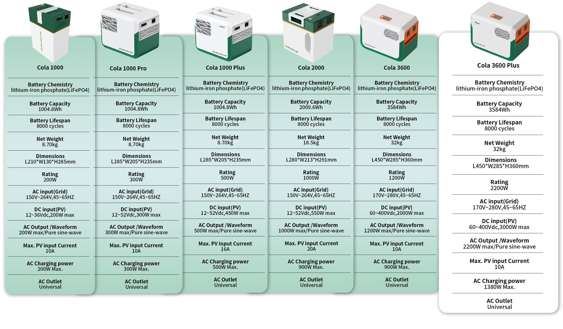 The Cola3600 Solar is a high-performance portable power station designed to deliver reliable and efficient energy for a wide range of applications. With its robust lithium-ion phosphate (LiFePO4) battery chemistry, the Cola3600 offers a substantial 36,000kwh capacity and a 1,000W rated power output, making it ideal for outdoor adventures, emergency backup, and off-grid power needs.